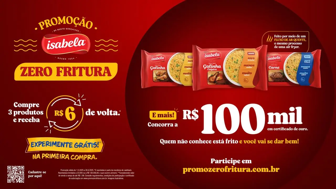 Já pensou em experimentar o Lámen Zero Fritura de Isabela e ainda receber um cashback de R$ 6,00? Além do cashback, os participantes da promoção da marca concorrem a R$ 100 mil em certificado de ouro!